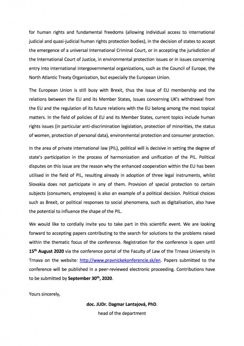 CONFERENCE OF DEPARTMENT OF INTERNATIONAL LAW AND EUROPEAN LAW - "Political decisions and their impact on international and European law"