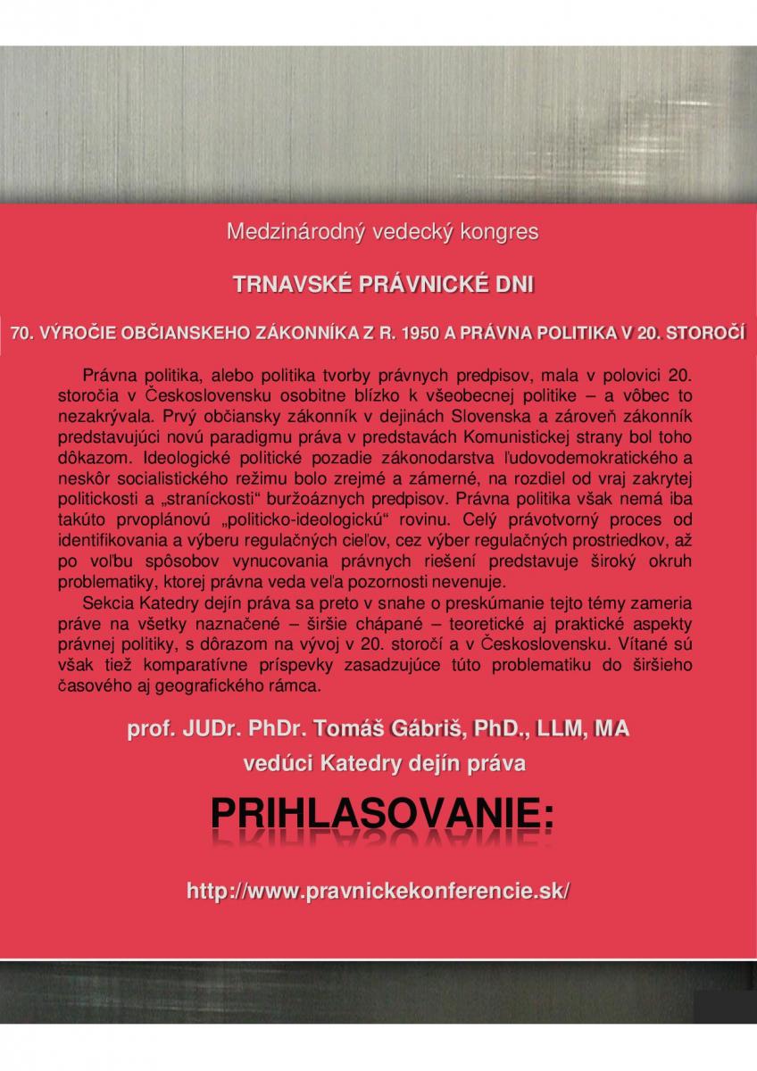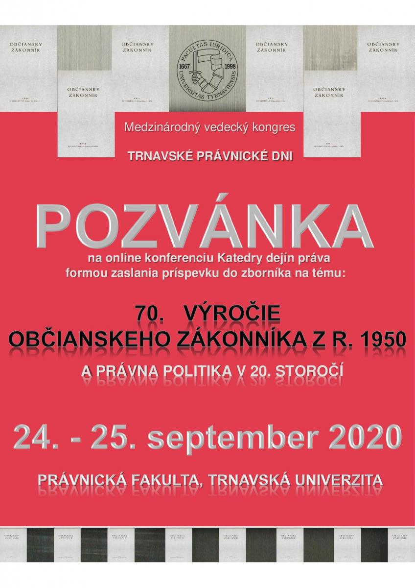 Konferencia na tému "70. výročie Občianskeho zákonníka z r. 1950 a právna politika v 20. storočí " (Katedra dejín práva)