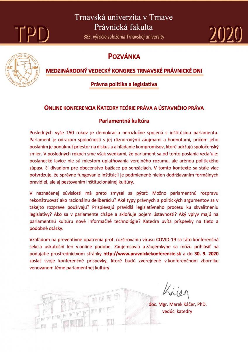 Konferencia na tému "Parlamentná kultúra" (Katedra teórie práva a ústavného práva)