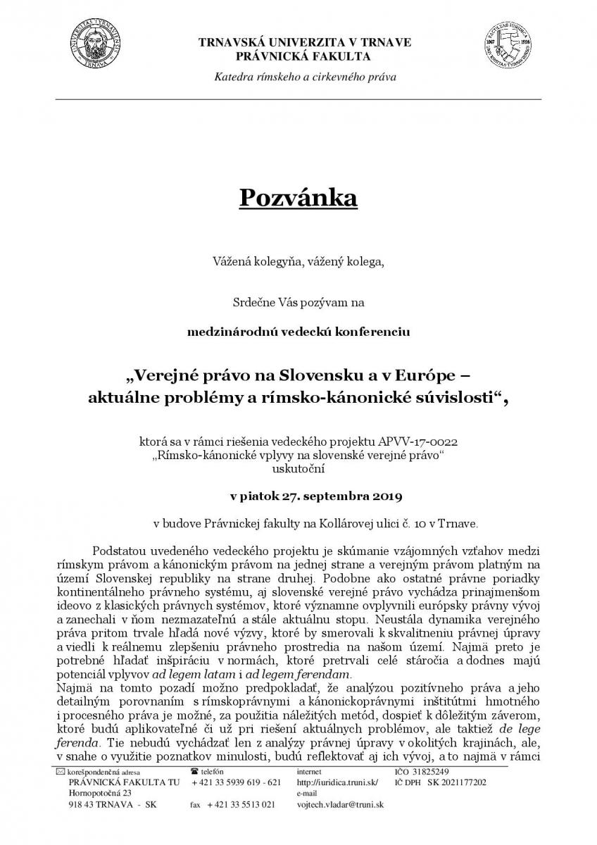 Verejné právo na Slovensku a v Európe – aktuálne problémy a rímsko-kánonické súvislosti
