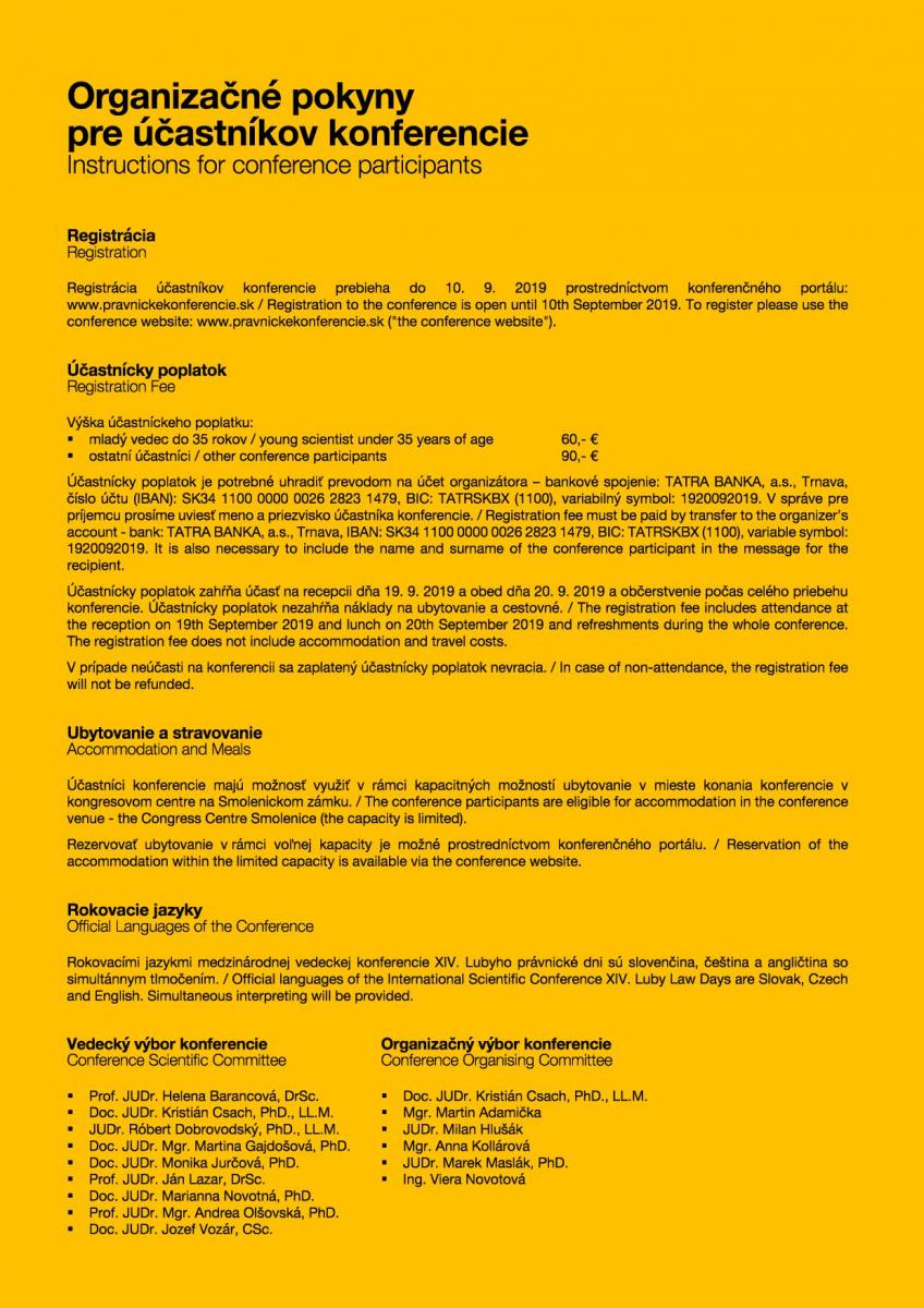 Organizačné pokyny
