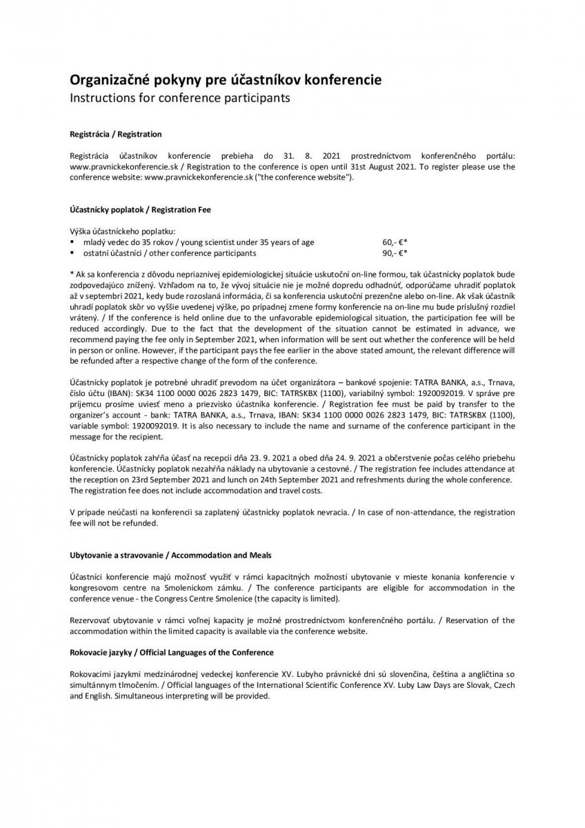 XV. Lubyho právnické dni / XV. Dies Luby iurisprudentiae